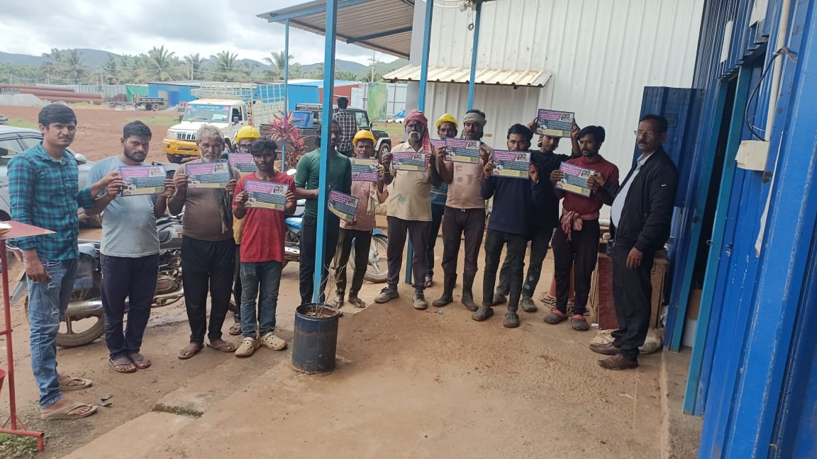 ದಿನಾಂಕ 5-8-25 ರಂದು ತರೀಕೆರೆ ತಾಲೂಕಿನಲ್ಲಿ ನಡೆಯುತ್ತಿರುವ ಕಟ್ಟಡ ಕಾಮಗಾರಿ ಸ್ಥಳದಲ್ಲಿ ಅಂತರಾಷ್ಟ್ರೀಯ ವಲಸೆ ಕಾರ್ಮಿಕರಿಗೆ ಮಾದಕ ವಸ್ತುಗಳ ಸೇವನೆಯಿಂದ ಆಗುವ ದುಷ್ಪರಿಣಾಮಗಳ ಕುರಿತು ಅರಿವು ಮೂಡಿಸಲಾಯಿತು ಹಾಗೂ ಬಾಲ್ಯಾವಸ್ಥೆ ಮತ್ತು ಕಿಶೋರಾವಸ್ಥೆ ಕಾರ್ಮಿಕರ ಬಳಕೆಯ ಕುರಿತು ಸಂಸ್ಥೆಯವರಿಗೆ ಅರಿವು ಮೂಡಿಸಲಾಯಿತು