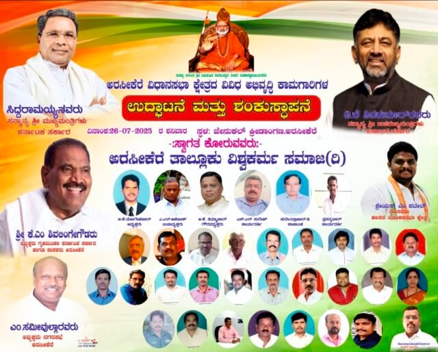 ಮುಖ್ಯಮಂತ್ರಿ ಮತ್ತು ಉಪ ಮುಖ್ಯಮಂತ್ರಿಗಳ ಕಾರ್ಯಕ್ರಮಕ್ಕೆ ಅರಸೀಕೆರೆ ತಾಲೂಕು ವಿಶ್ವಕರ್ಮ ಸಮುದಾಯದಿಂದ ಸ್ವಾಗತ..