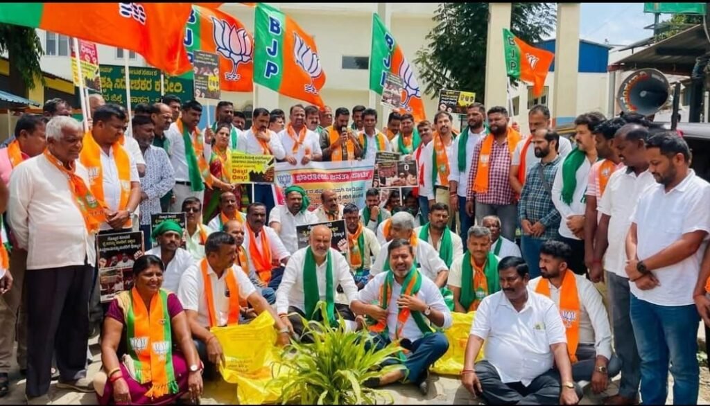 ರಸಗೊಬ್ಬರದ ಕೊರತೆ ವಿಚಾರವಾಗಿ ಕಾಂಗ್ರೆಸ್ ಸರ್ಕಾರದ ವಿರುದ್ಧ ಬಿಜೆಪಿ ರೈತ ಮೋರ್ಚಾ ವತಿಯಿಂದ : ಹಾಸನ ನಗರದ ಕೃಷಿ ಜಂಟಿ ನಿರ್ದೇಶಕರ ಕಚೇರಿ ಎದುರು ನಡೆದ ಬೃಹತ್ ಪ್ರತಿಭಟನೆ :